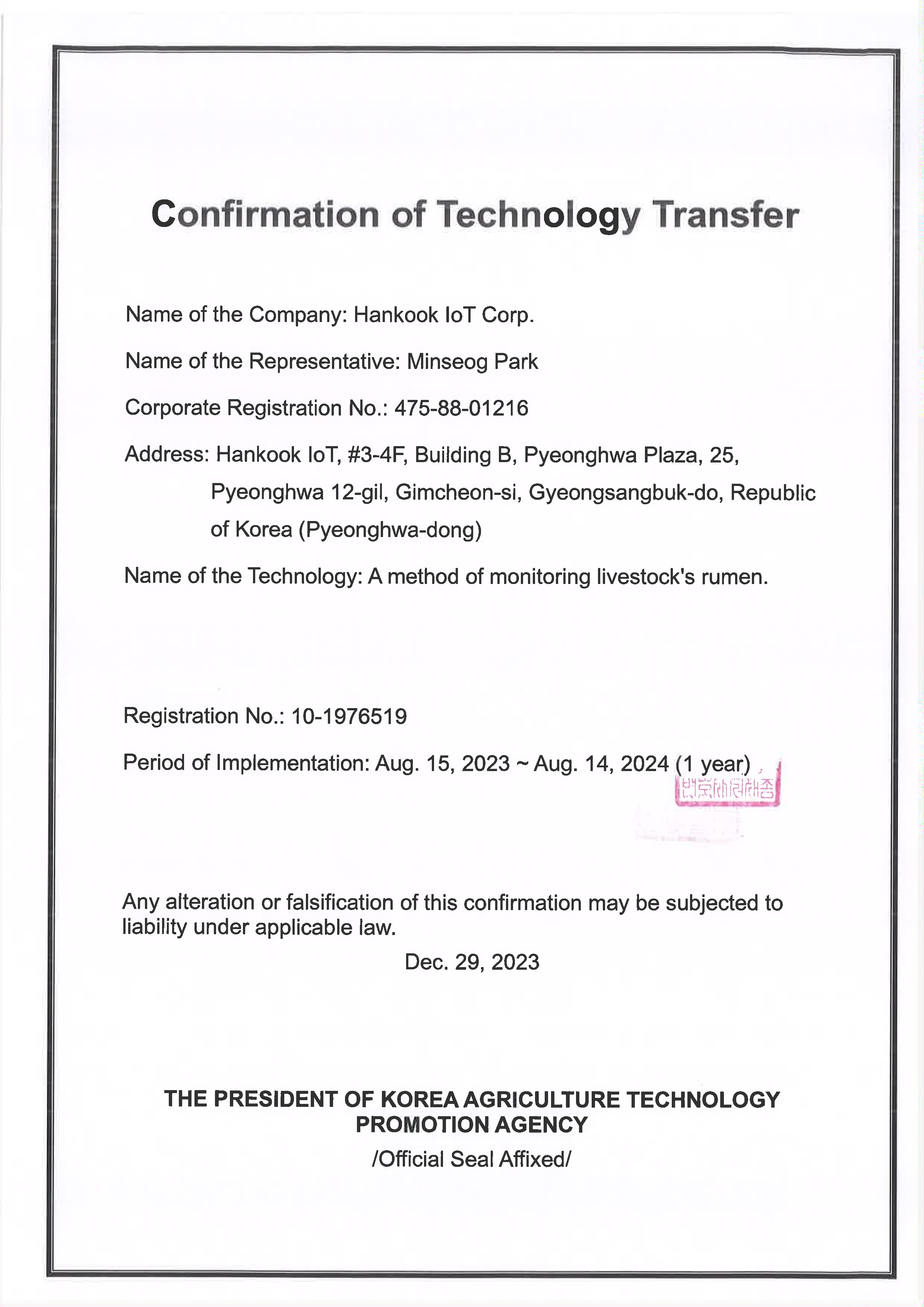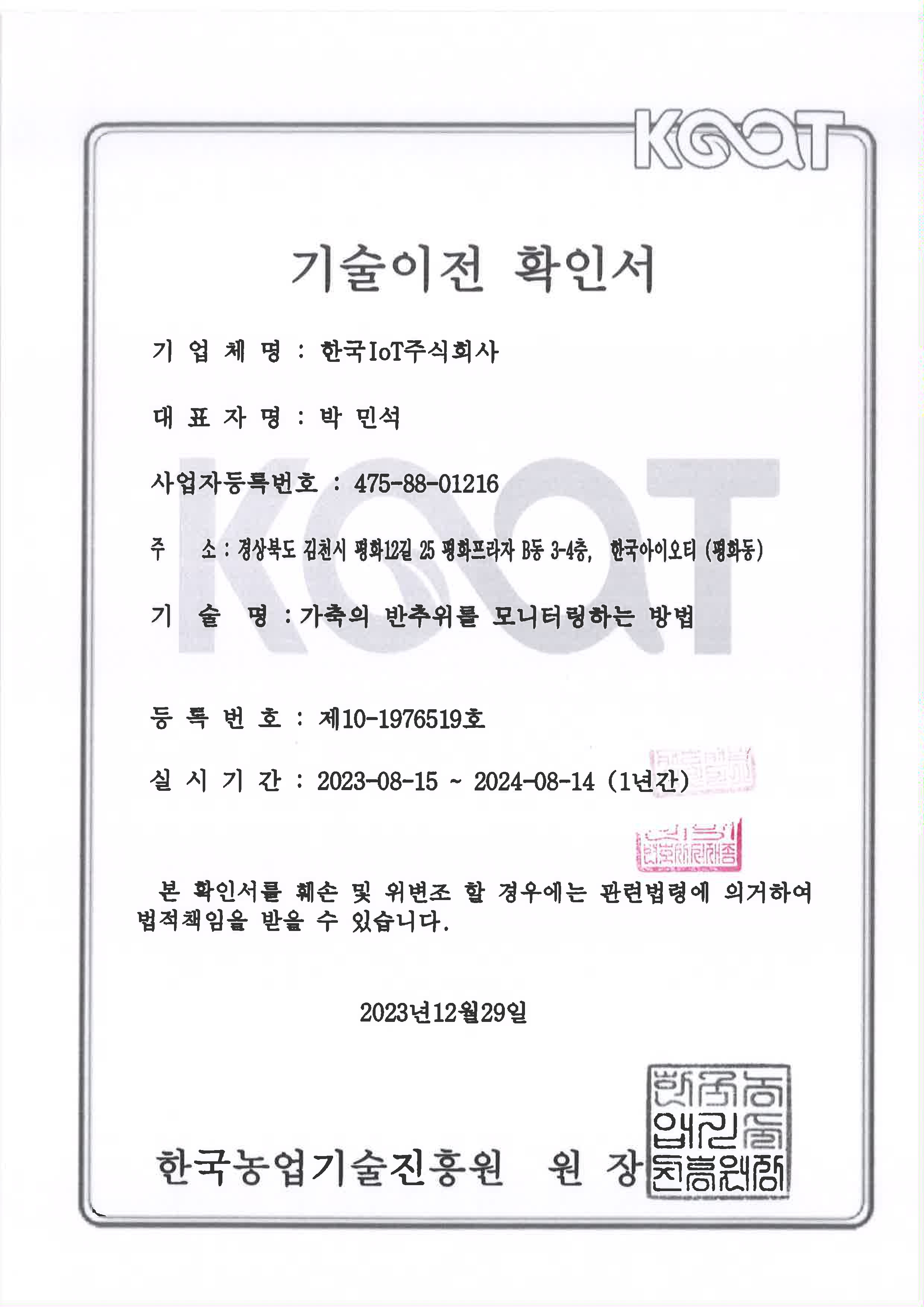 *2022 KC Certification for Ear Tag-type Estrus Detector